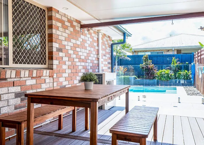 Featuring a private pool for guests' relaxation, Theme Park Retreat - Sunlit Stillness By The Pool Gold Coast villa is located around a 10-minute drive from Hope Island Marina.